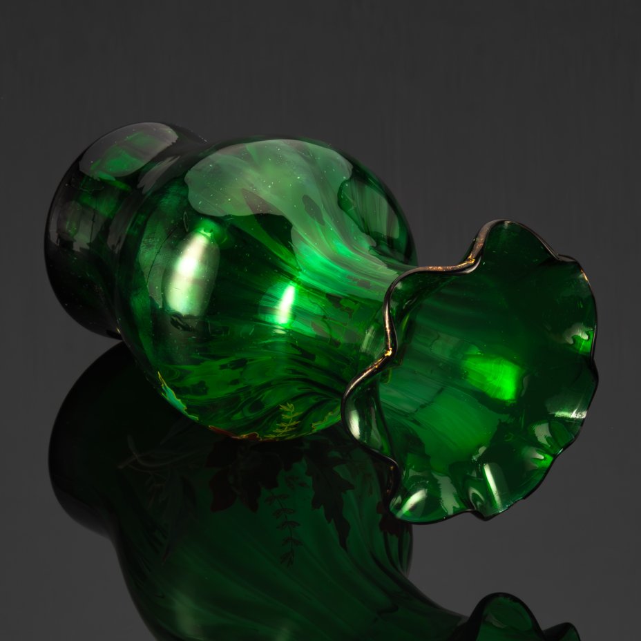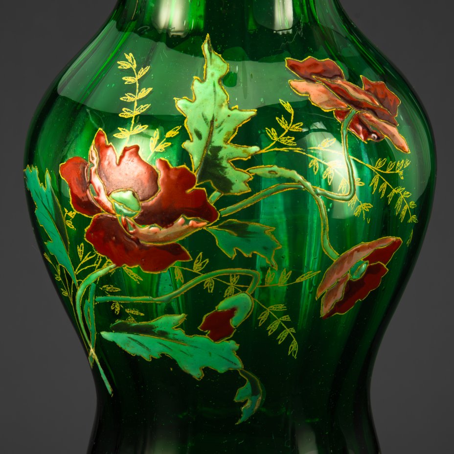 Ваза с фестончатым бортом, декорированная изображением маков, стекло, роспись эмалями, Западная Европа, 1880-1920 гг.