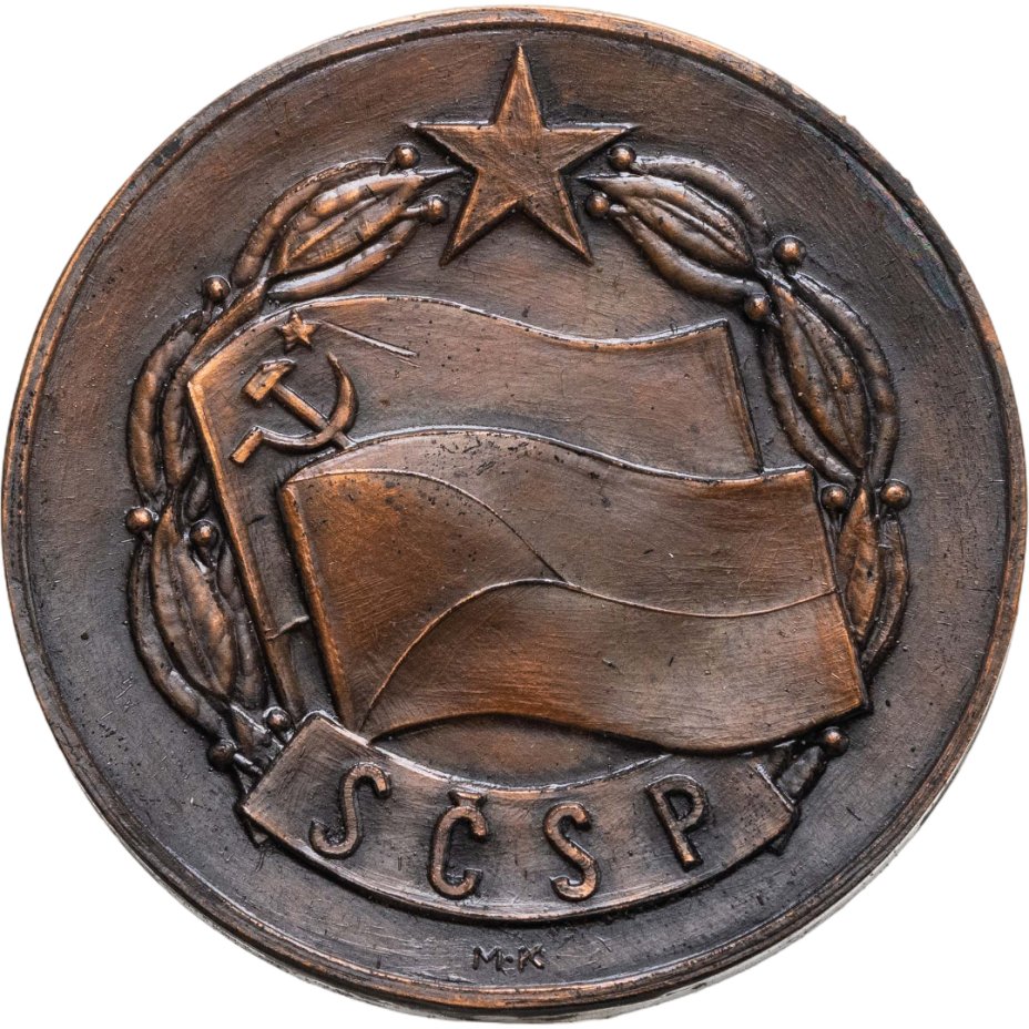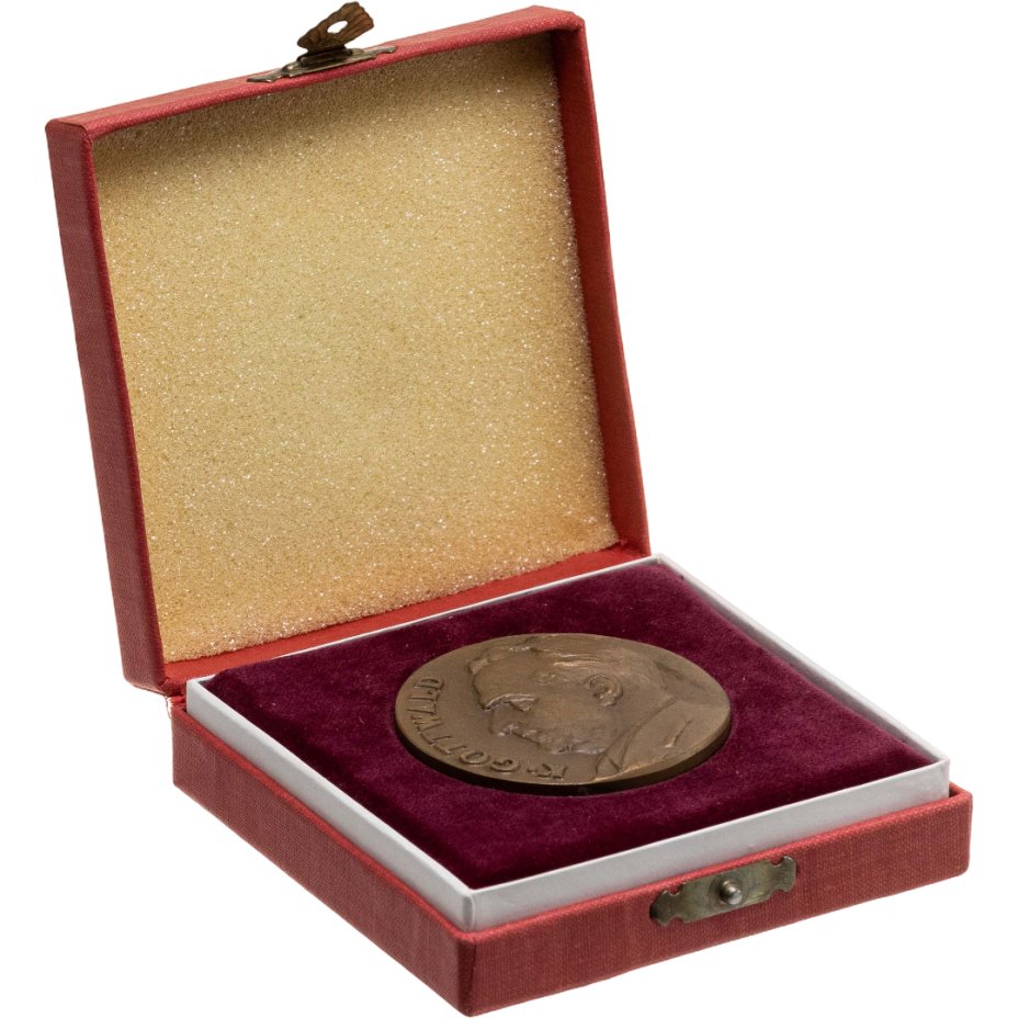 Памятная настольная медаль в честь Клемента Готвальда в оригинальном футляре, томпак, Чехословакия, 1973 г.
