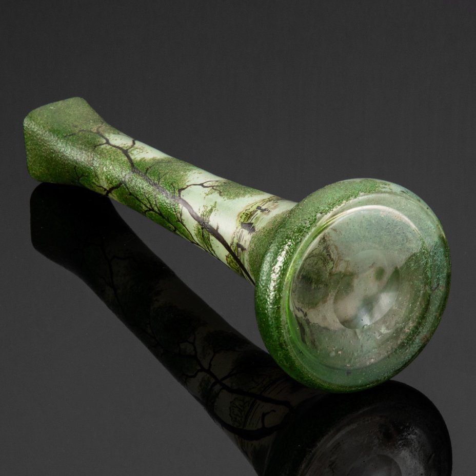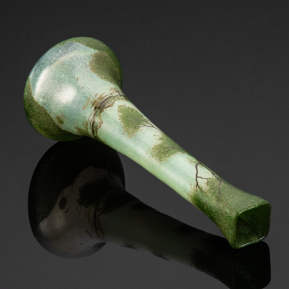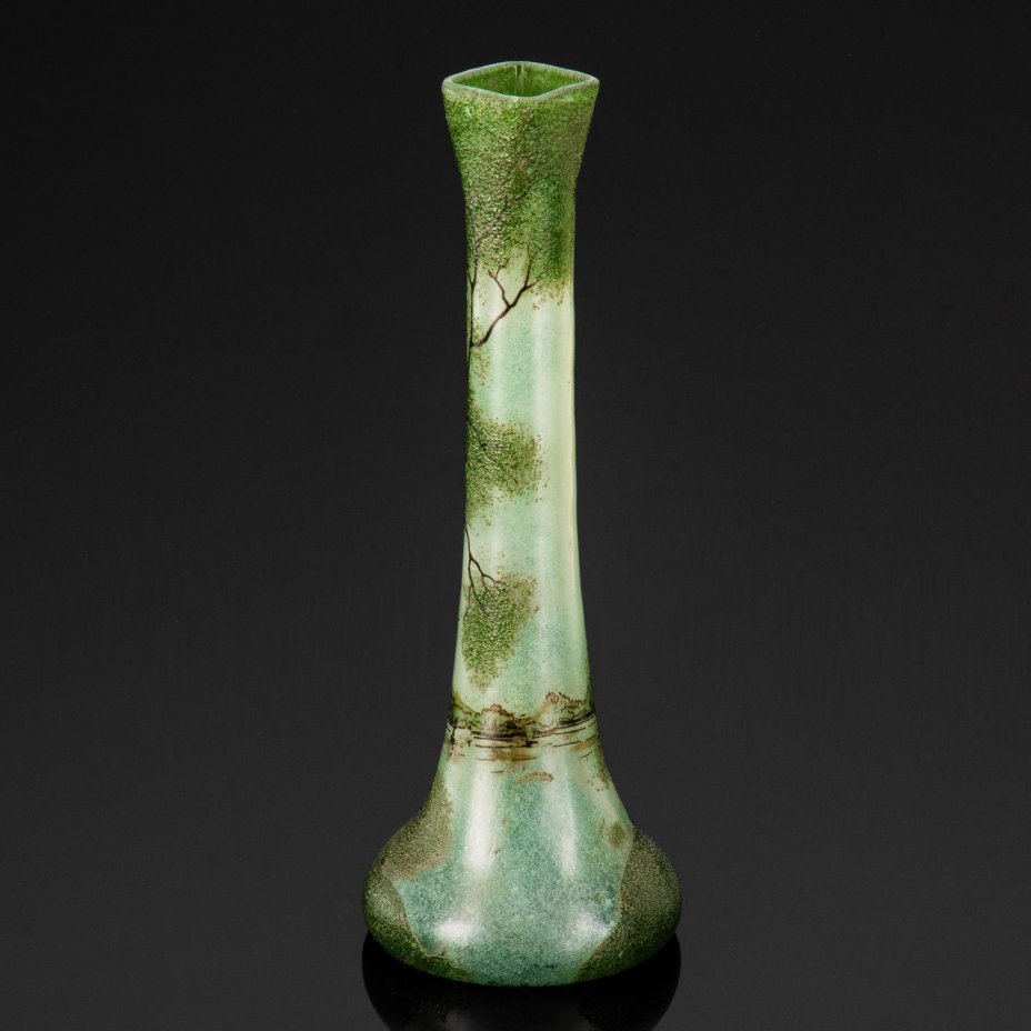 Ваза-солифлёр, декорированная изображением пейзажа с озером, стекло, травление, роспись, эмаль, Франция, 1900-1930 гг.