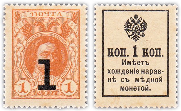 1 копейка 1915 (1917) Деньги-Марки, 3-й выпуск (Петр I)