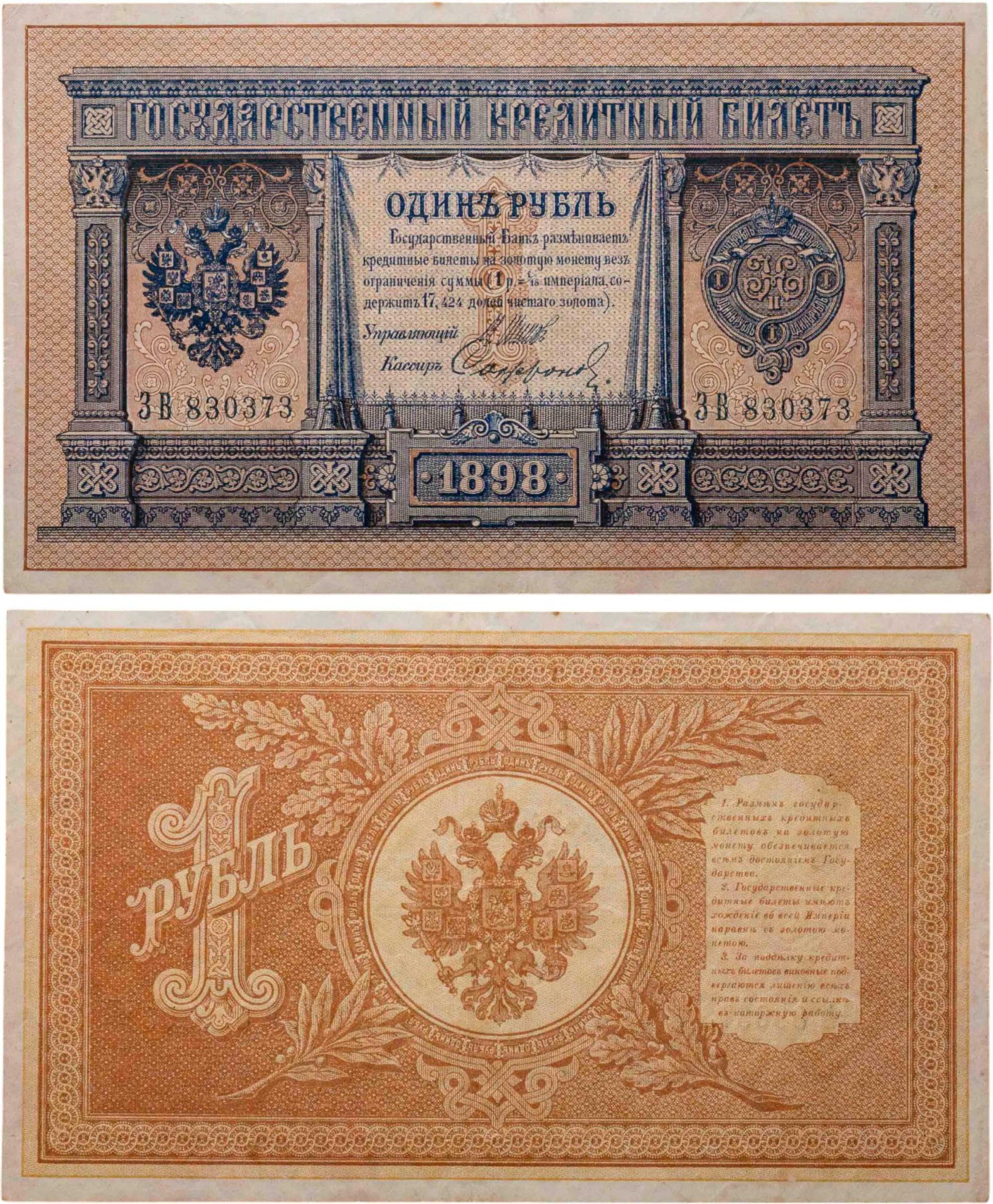 1 рубль 1898 управляющий Шипов, кассир Софронов