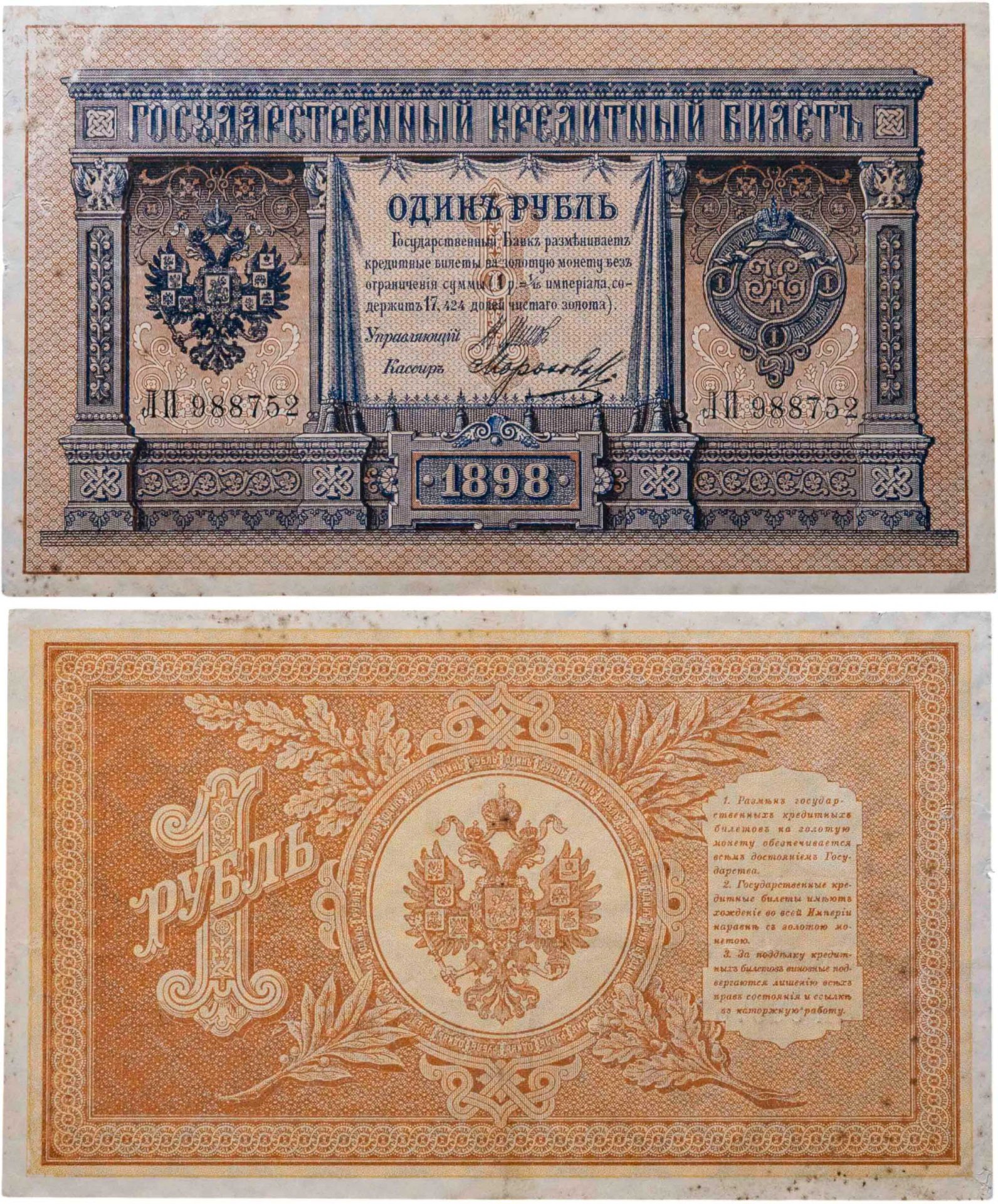 1 рубль 1898 управляющий Шипов, кассир Морозов