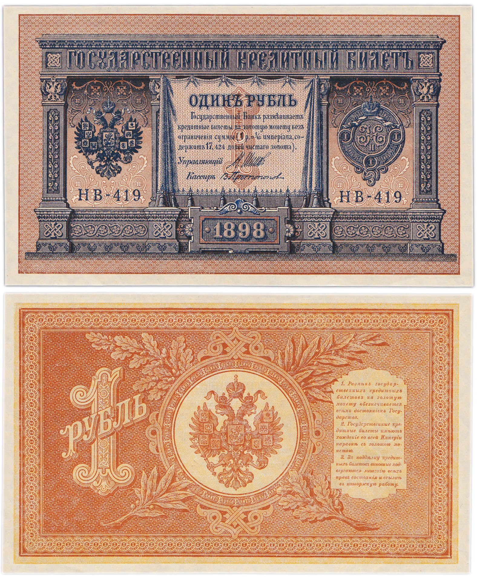 1 рубль 1898 НВ-419 управляющий Шипов, кассир Протопопов ПРЕСС