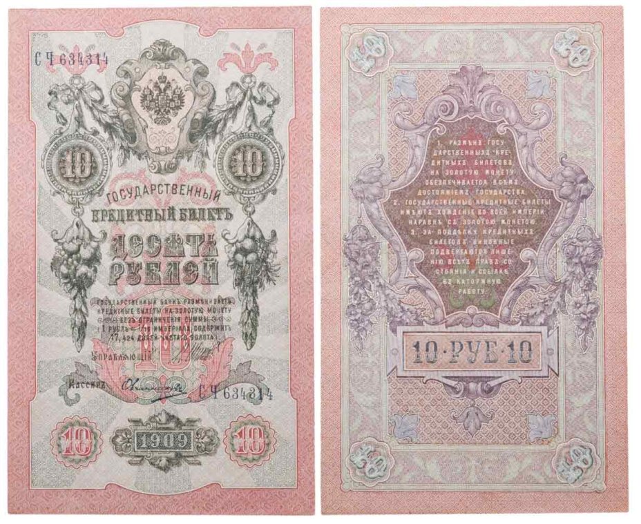 купить 10 рублей 1909 управляющий Шипов, кассир Овчинников
