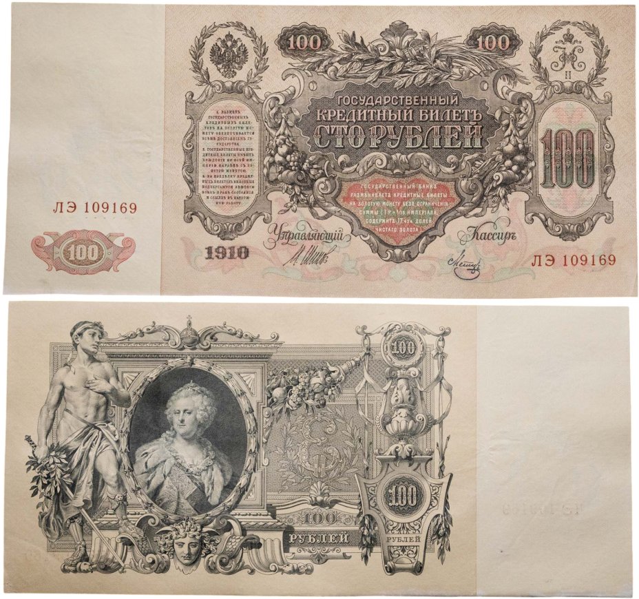 Купить 100 рублей 1910 Управляющий Шипов, кассир Метц
