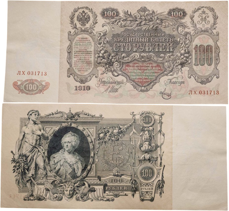 Купить 100 рублей 1910 Управляющий Шипов, кассир Метц