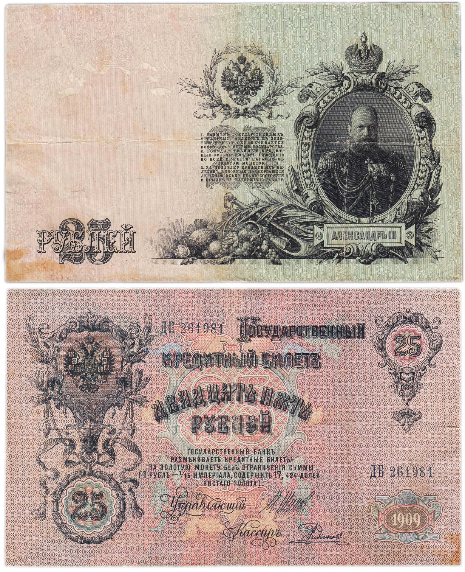25 рублей 1909 управляющий Шипов, кассир Родионов (Александр III), серия ДБ