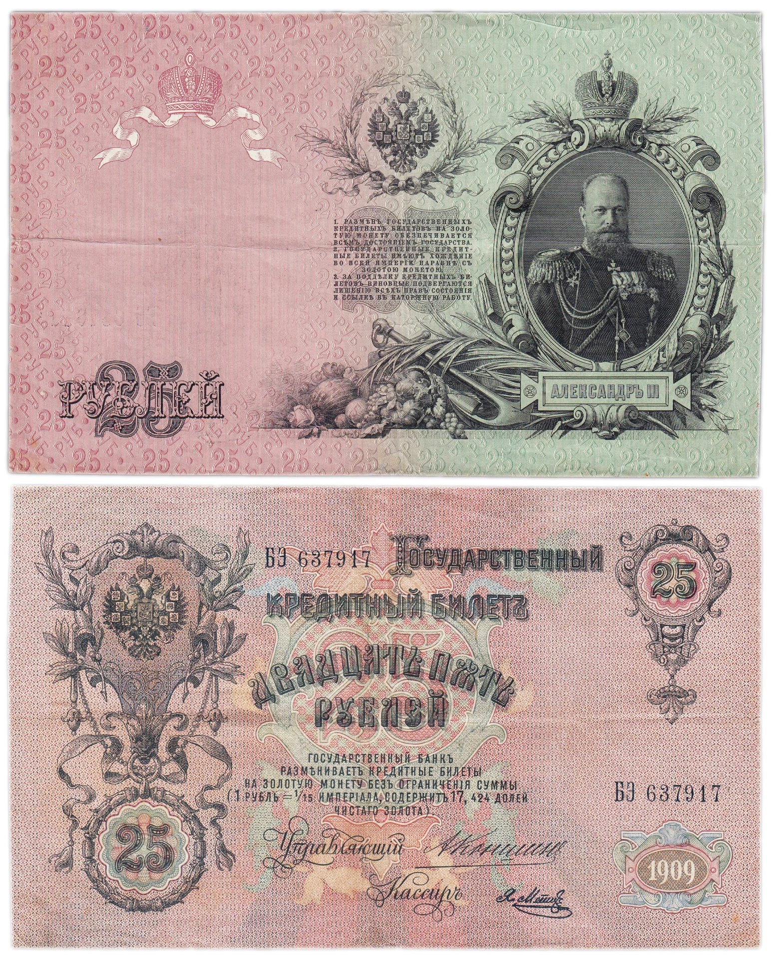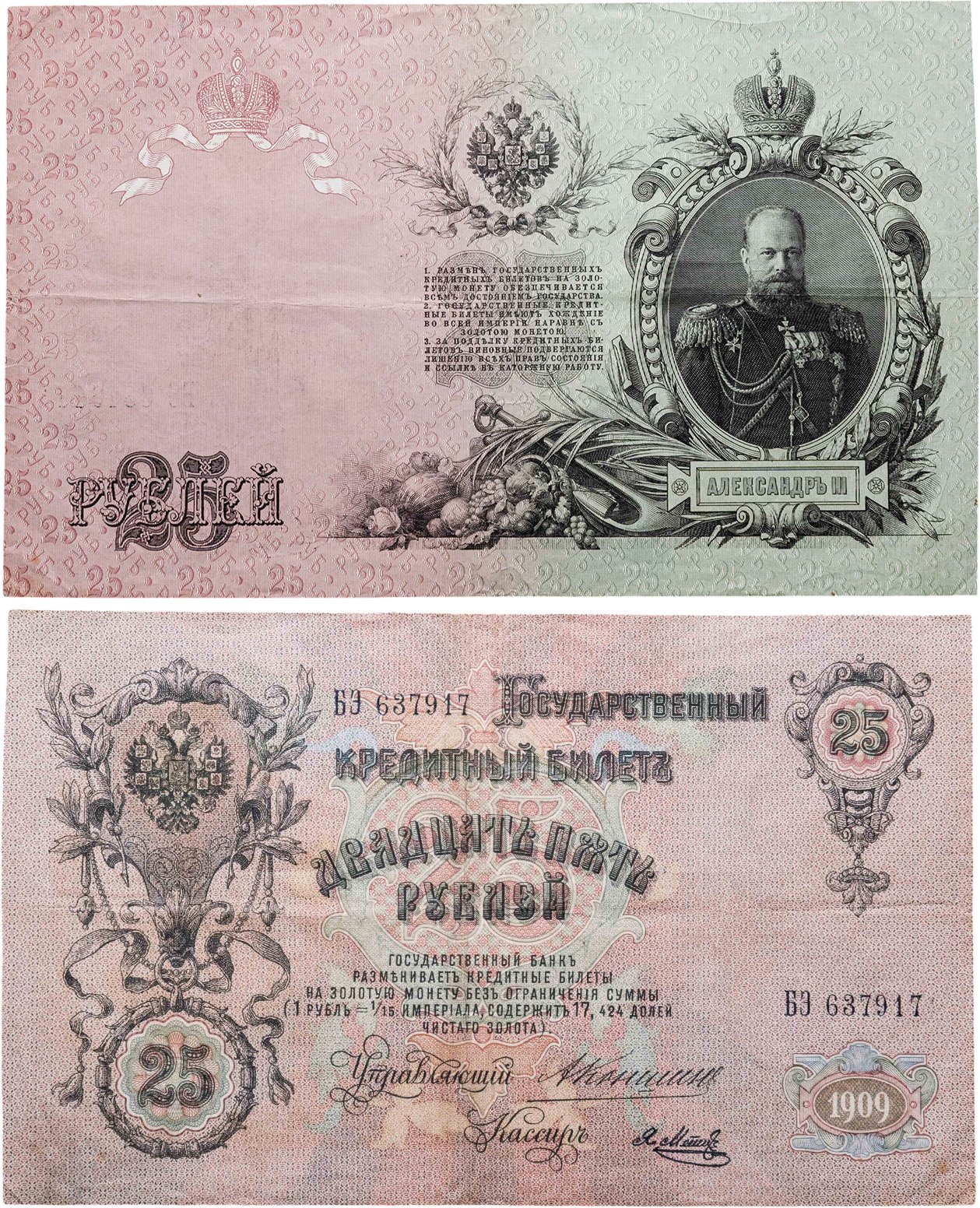 Купить 25 рублей 1909 Коншин, кассир Метц, серия БЭ