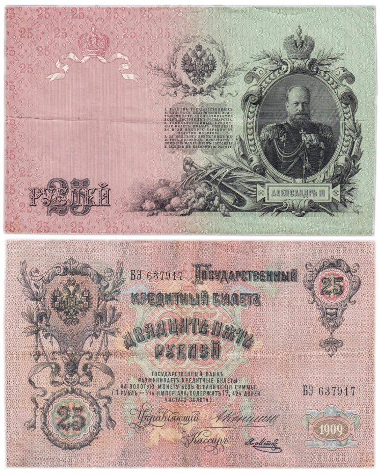 25 рублей 1909 Коншин, кассир Метц, серия БЭ