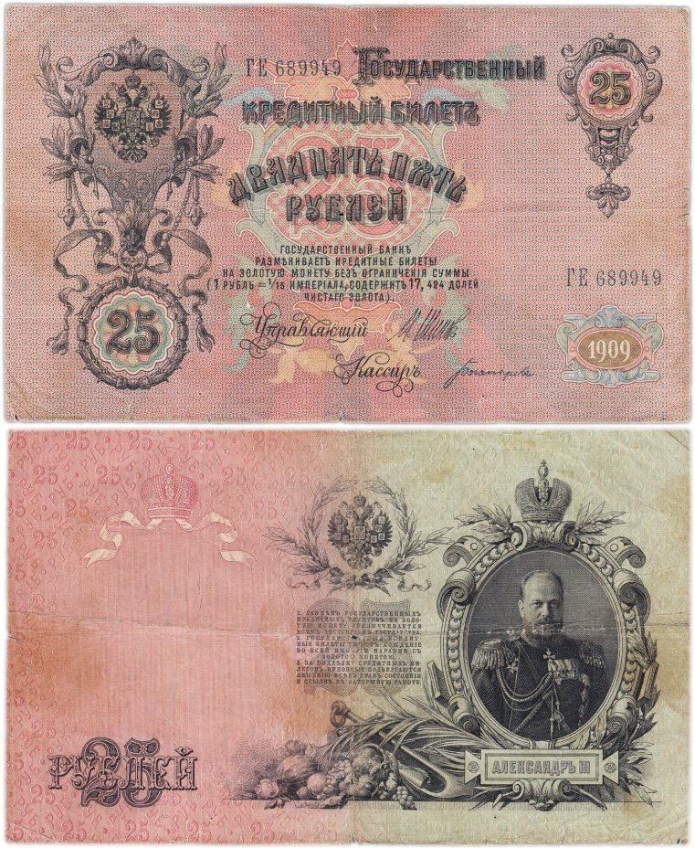 Купить 25 рублей 1909 Шипов  (Александр III)