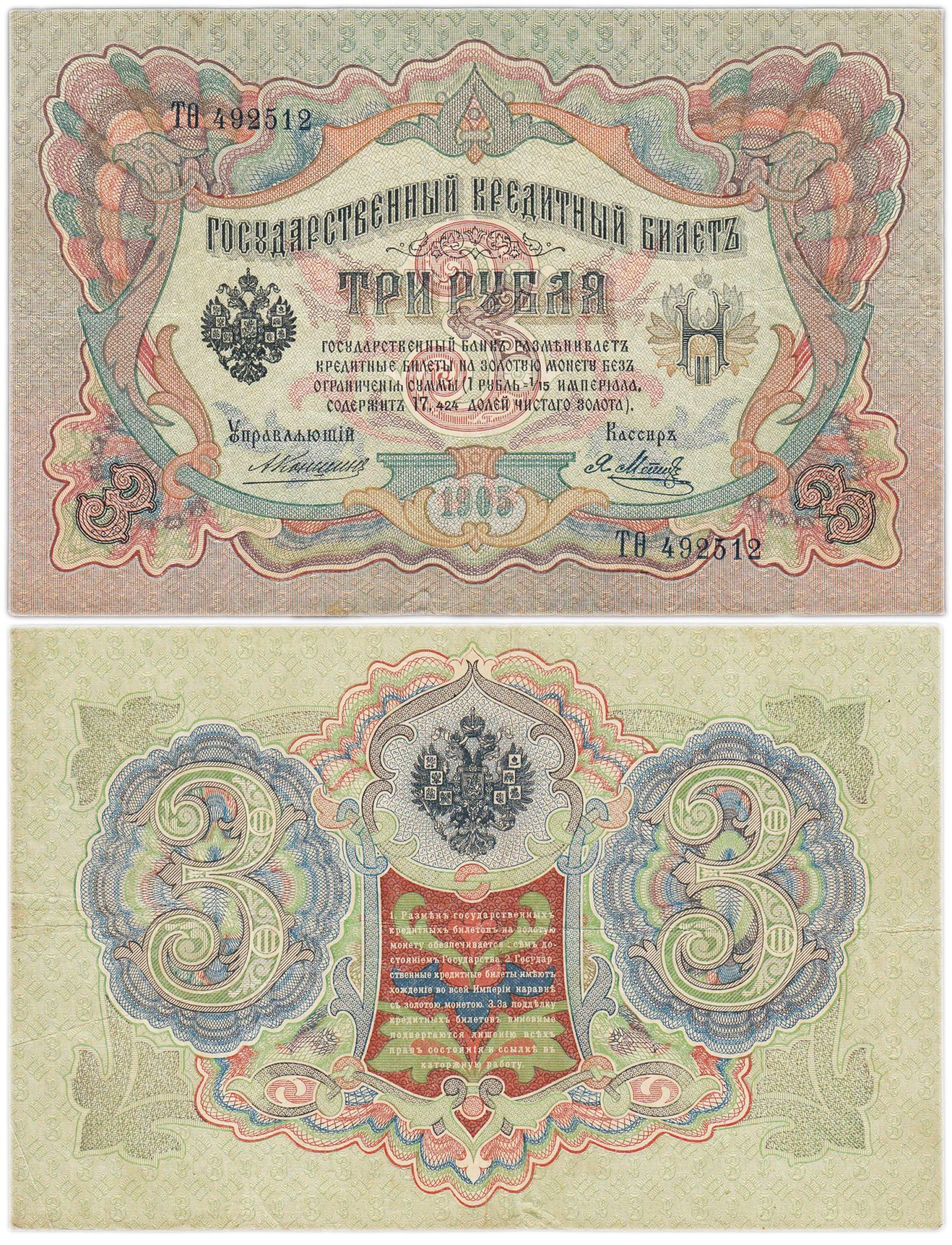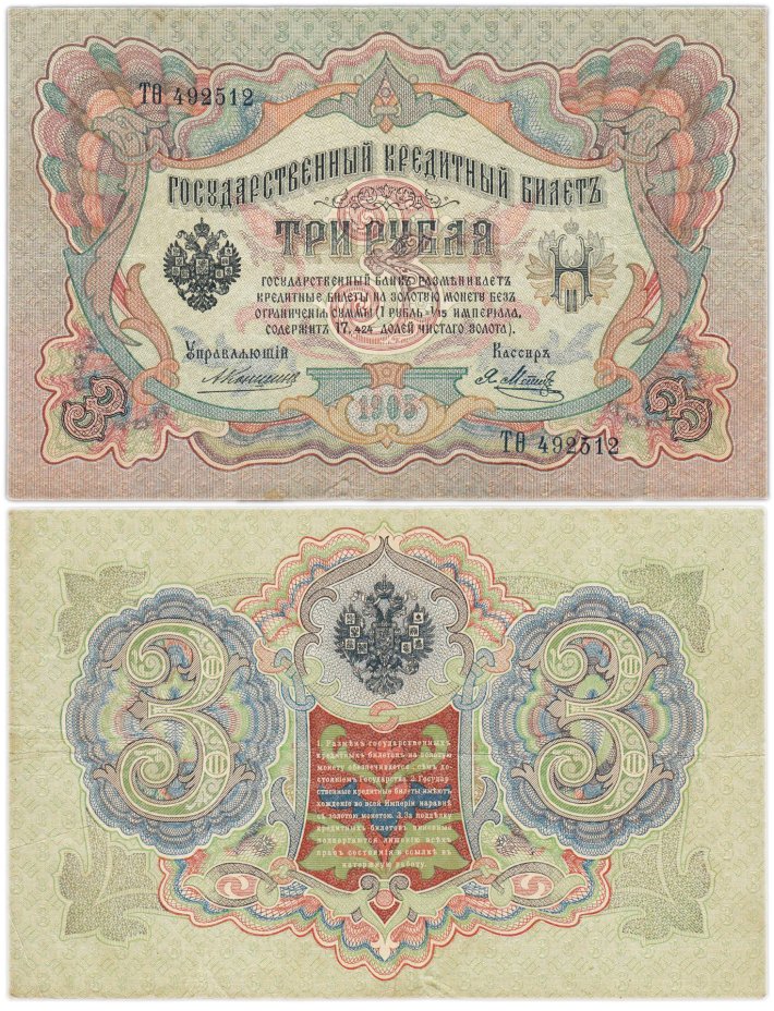 3 рубля 1905 управляющий Коншин, кассир Метц