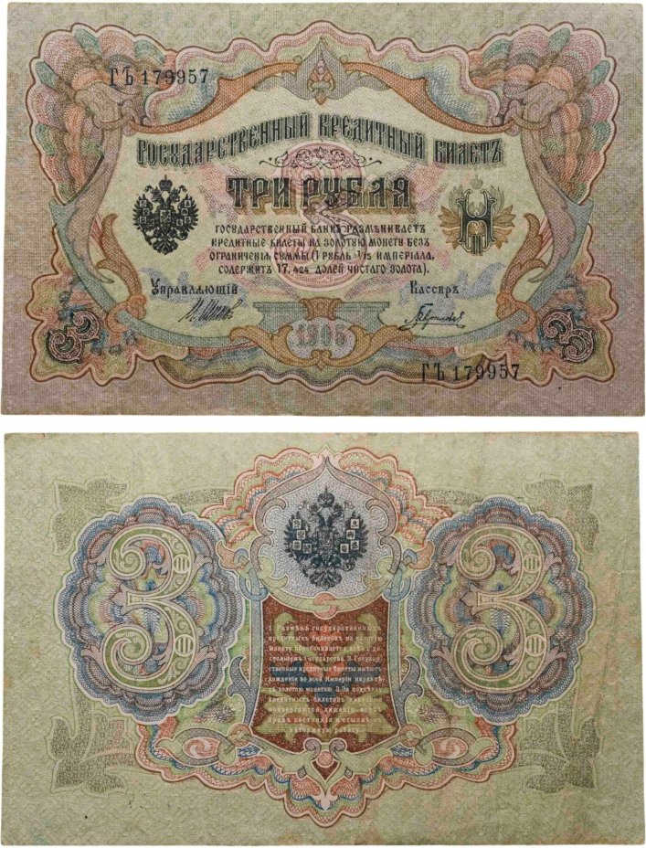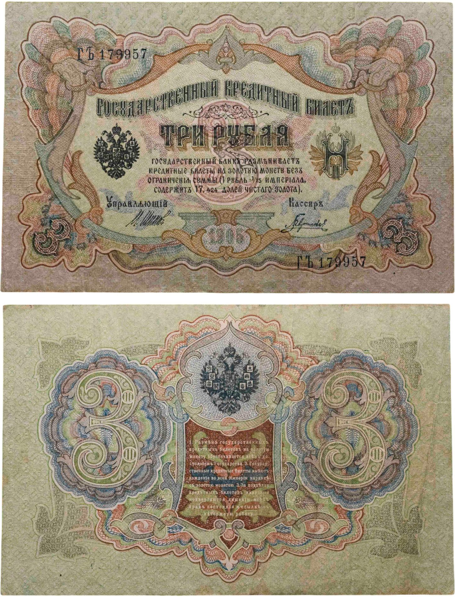 Купить 3 рубля 1905 управляющий Шипов, кассир Гаврилов