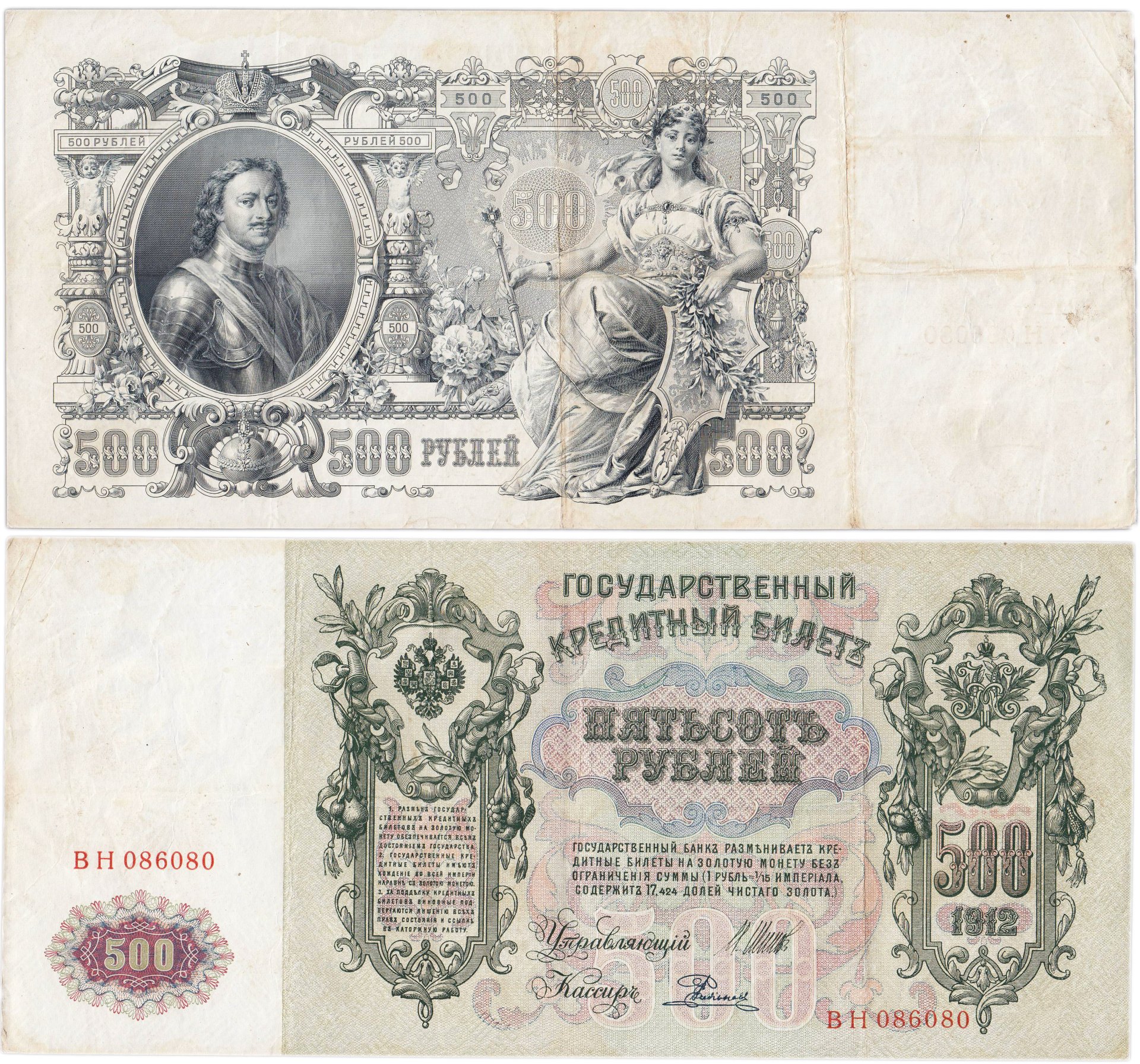500 рублей 1912 Шипов, кассир Родионов (Pick 87.1)
