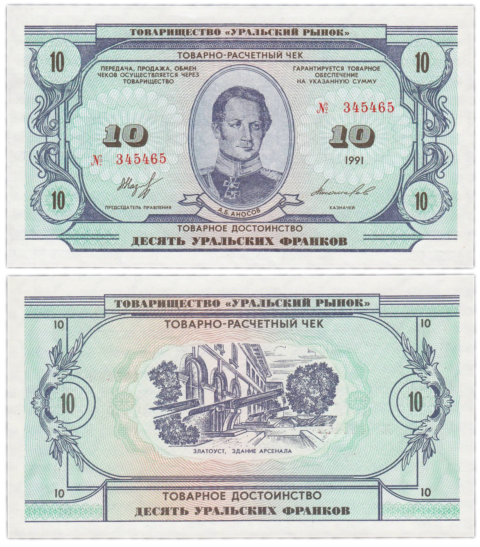 После принятия Конституции 1993 года, закрепившей монополию Центробанка на эмиссию денежных знаков в стране, уральские франки не поступали в оборот, но нашли применение в качестве талонов на питание на металлургическом заводе им. А. К. Серова во время руководства Бакова в 1997 году