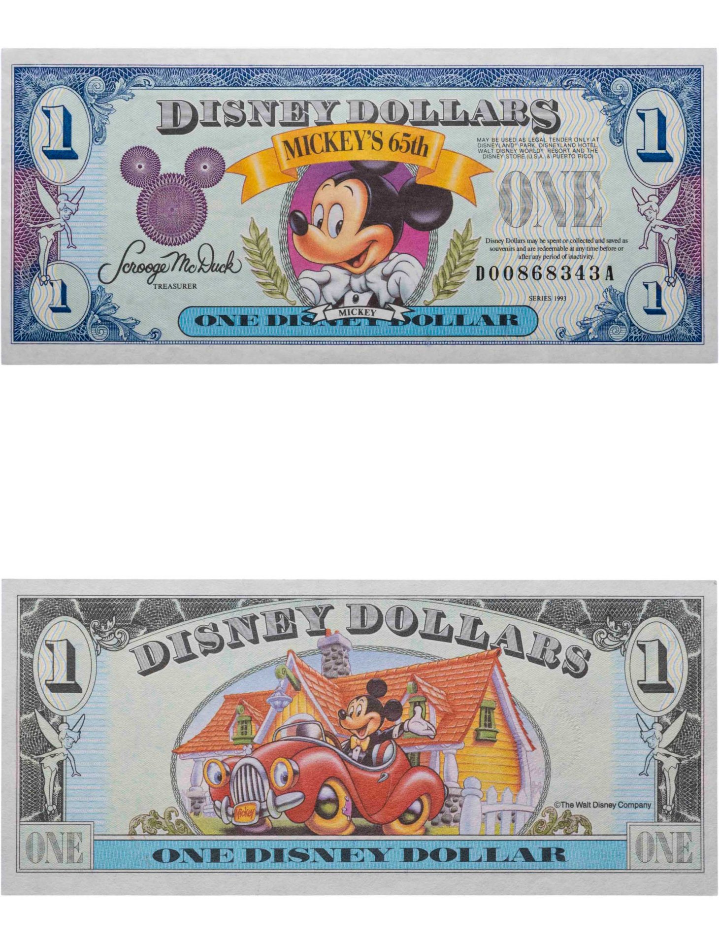 США 1 Дисней доллар 1993 год Серия DA (65-лет Микки Маусу)