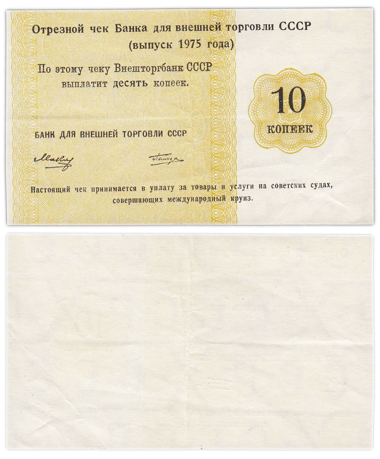 Отрезной КРУИЗНЫЙ чек 10 копеек 1975