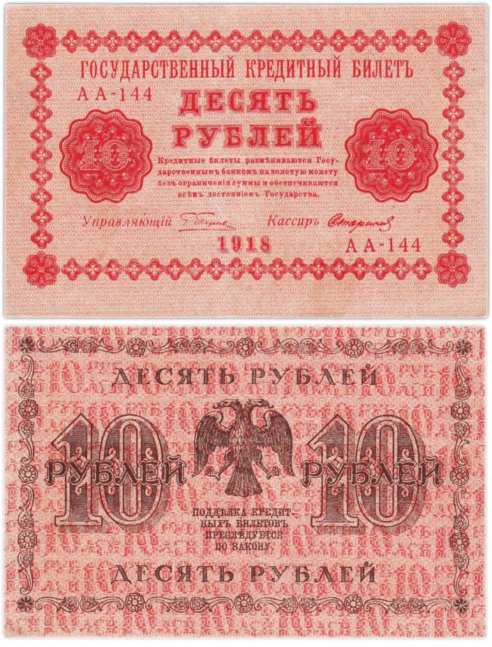 10 рублей 1918 год управляющий Пятаков, кассир Стариков