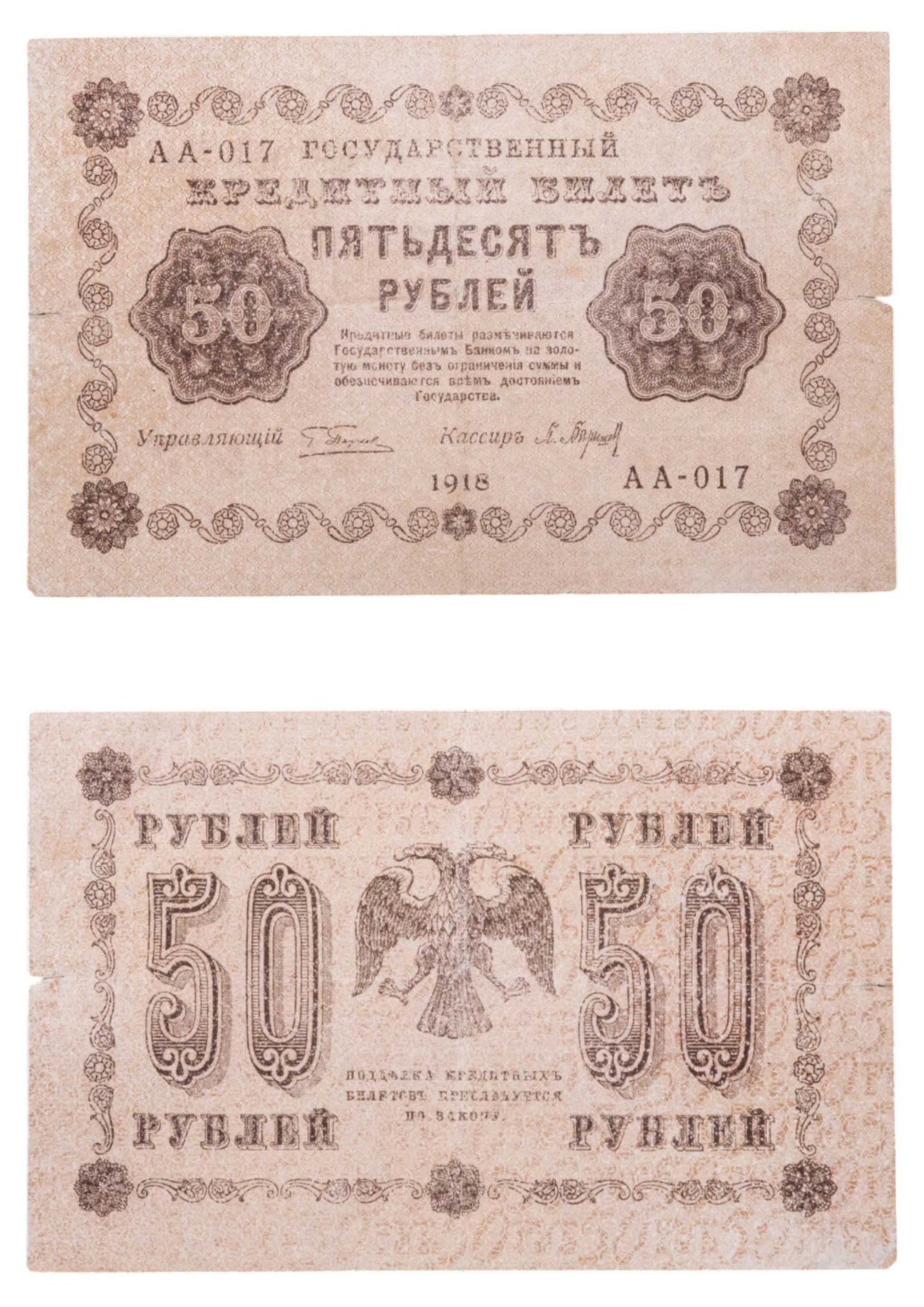 50 рублей 1918 год управляющий Пятаков, кассир Барышев серия АА