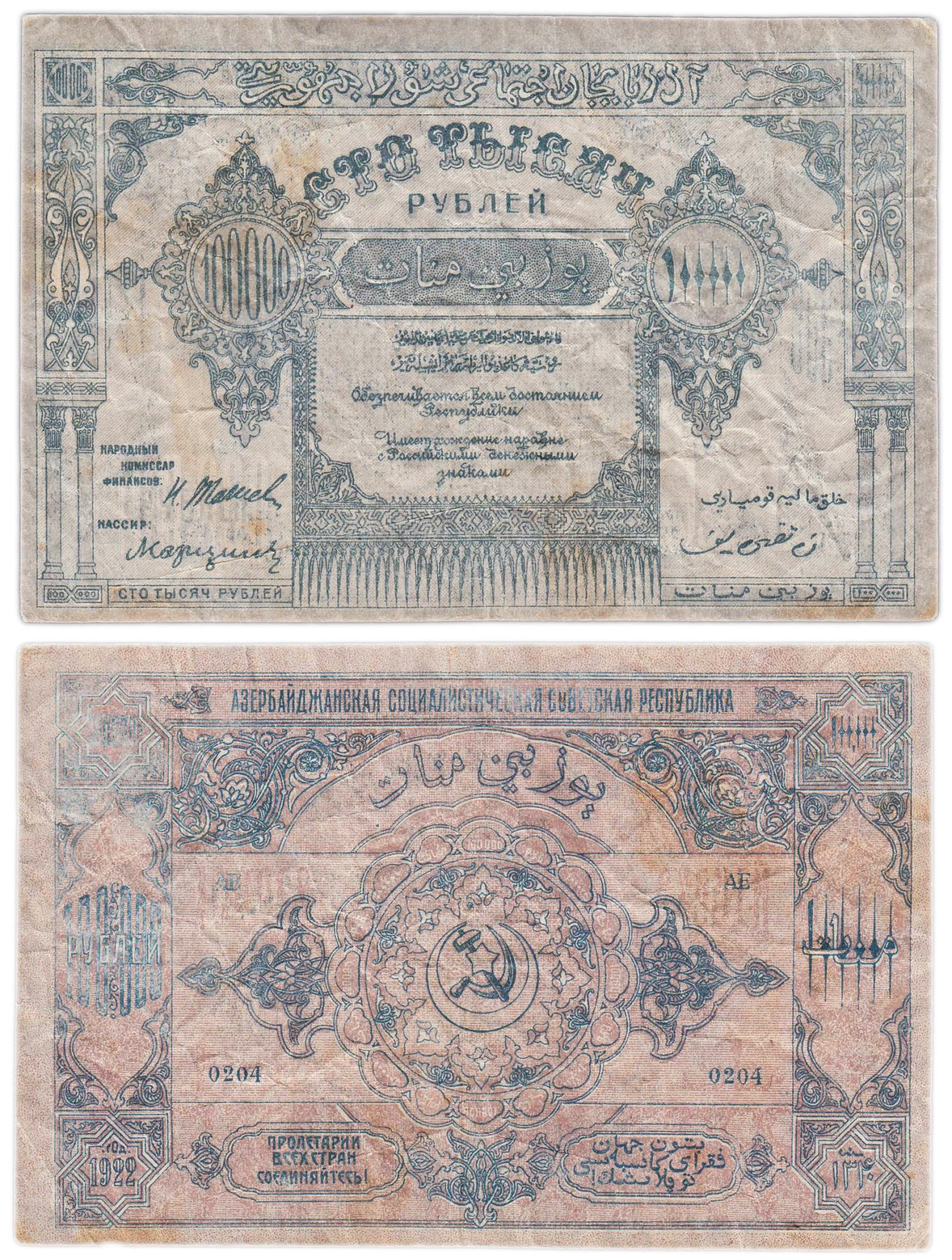 Азербайджан 100000 рублей 1922 Азербайджанская ССР