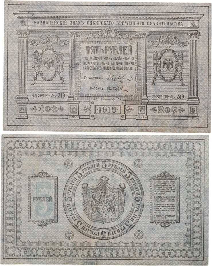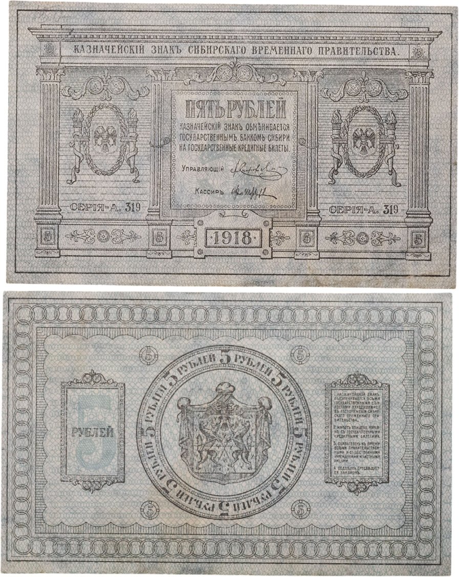 Колчак 5 рублей 1918 Сибирское Временное правительство