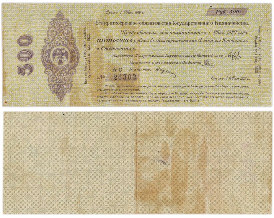 Колчак 500 рублей 1920 (1 мая 1920)