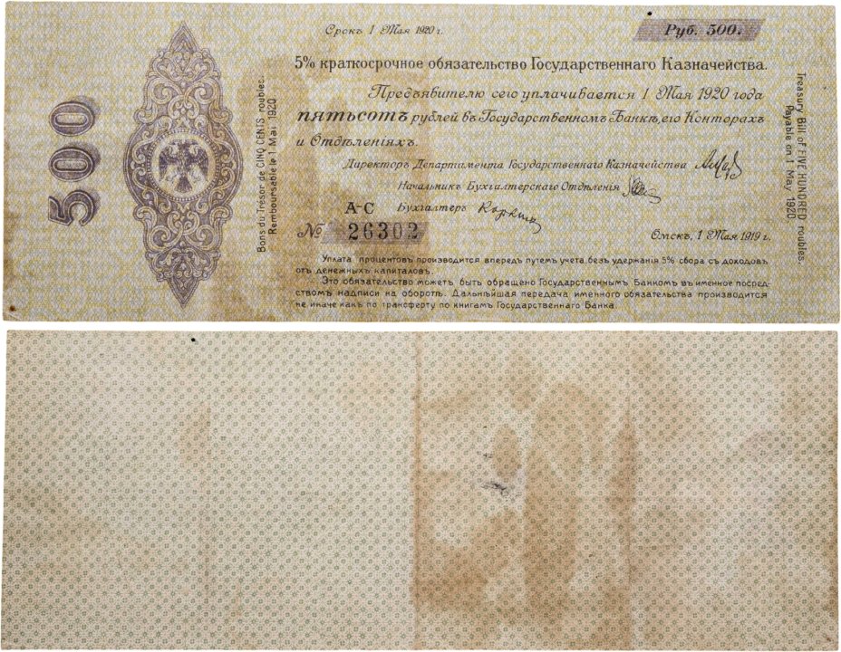 купить Колчак 500 рублей 1920 (1 мая 1920)