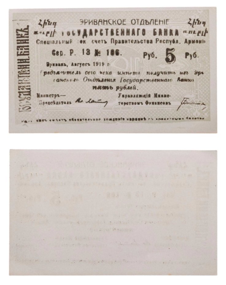 Республика Армения 5 рублей 1919 Эриванское отделение