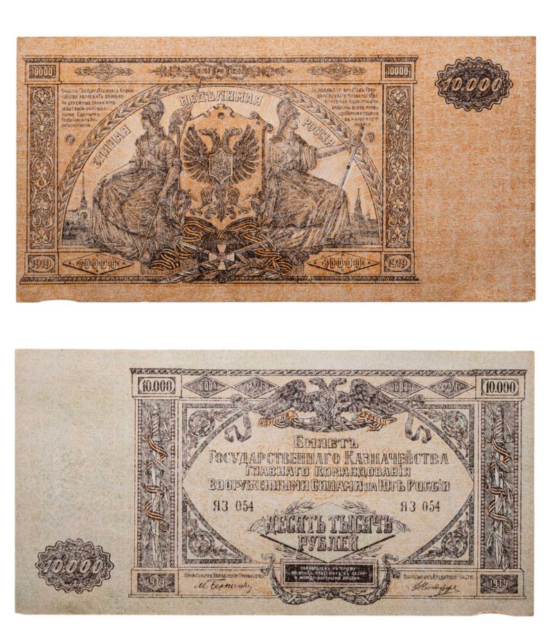 Вооруженные Силы Юга России (ВСЮР) 10000 рублей 1919 водяной знак "Мозаика"