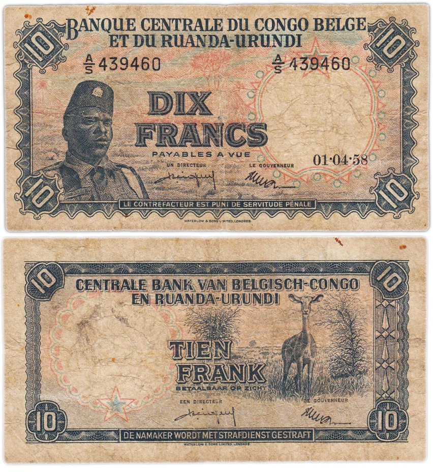 Бельгийское Конго (Руанда-Урунди) 10 франков 1958