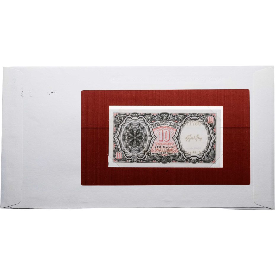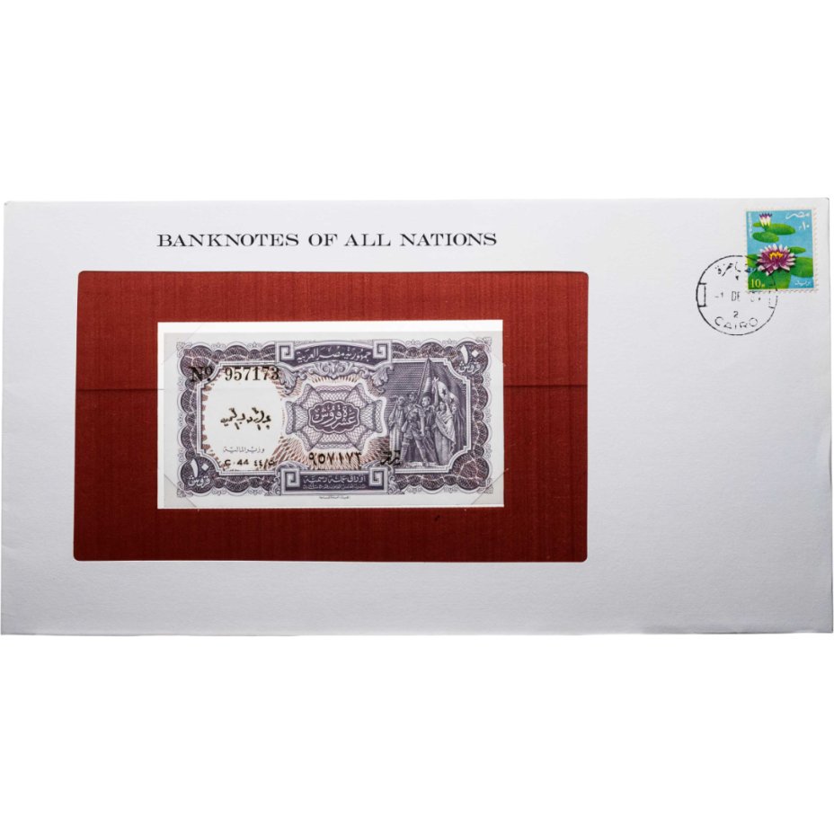 купить Египет 10 пиастр 1940-1960 в конверте с маркой