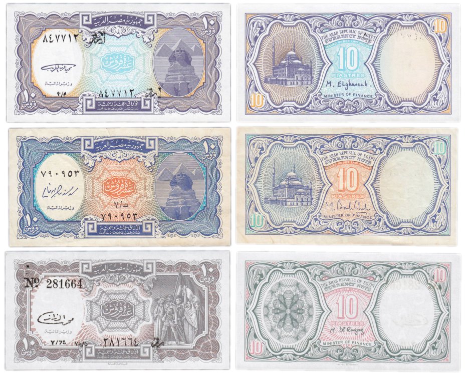 Купить Египет набор из 3 банкнот 10 пиастр 1998-2006