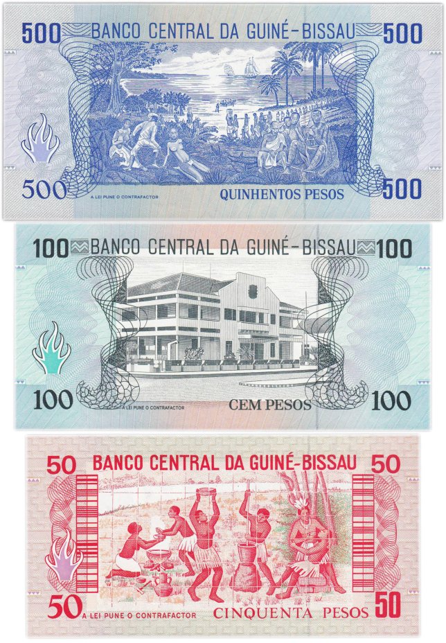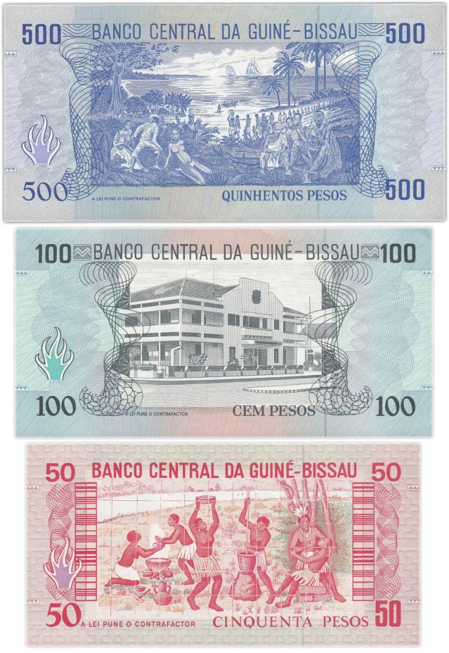 Гвинея-Биссау набор из 3 банкнот 50, 100, 500 песо 1990