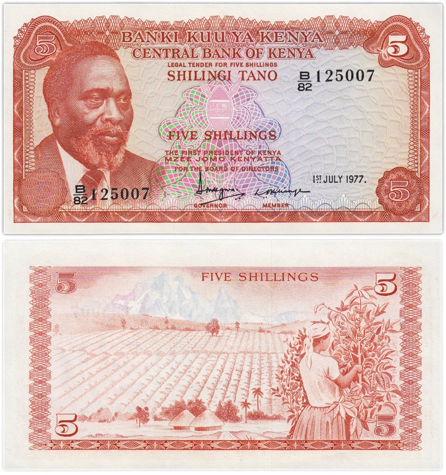 Кения 5 шиллингов 1977 года (Pick 11d)