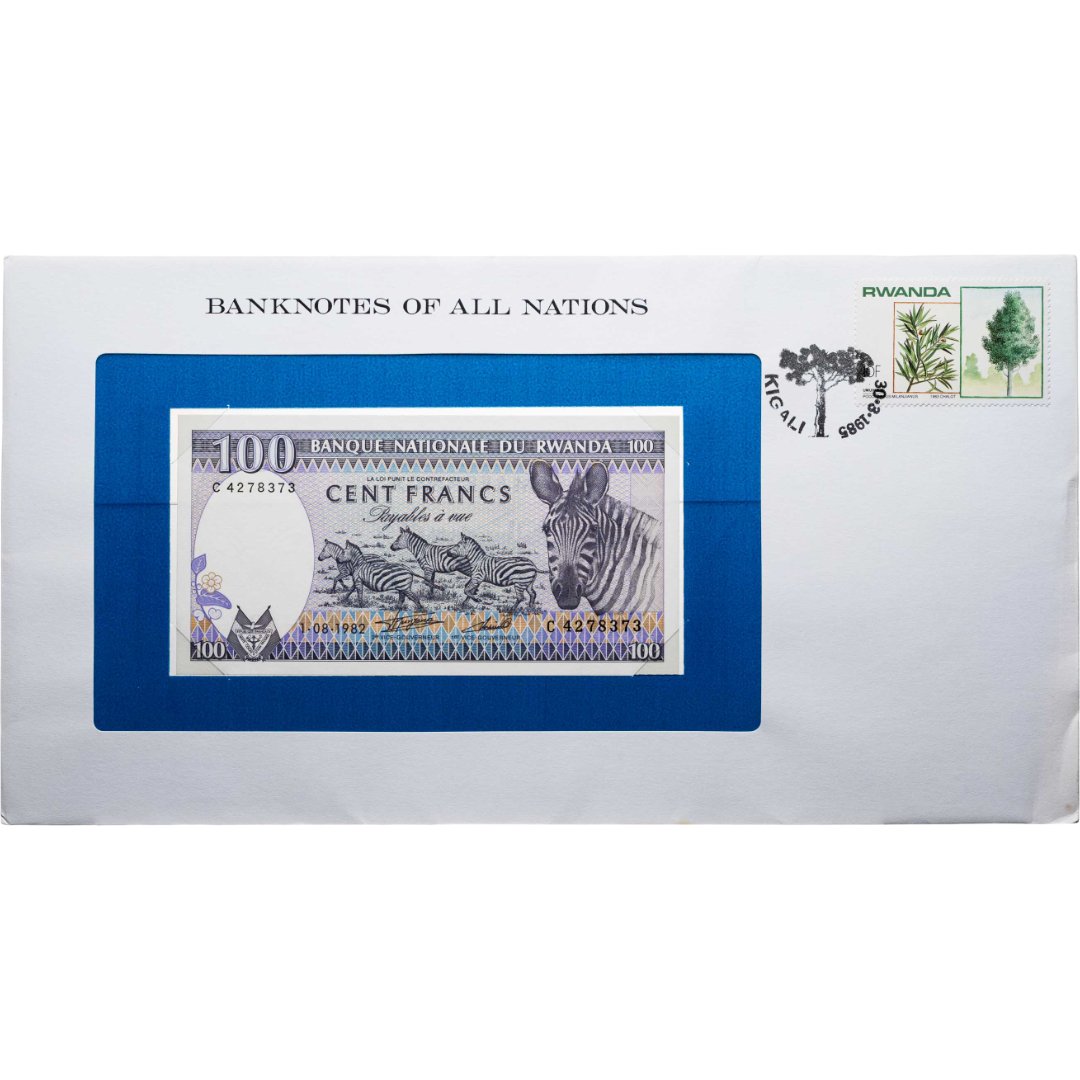 Купить Руанда 100 франков 1982 в конверте с маркой