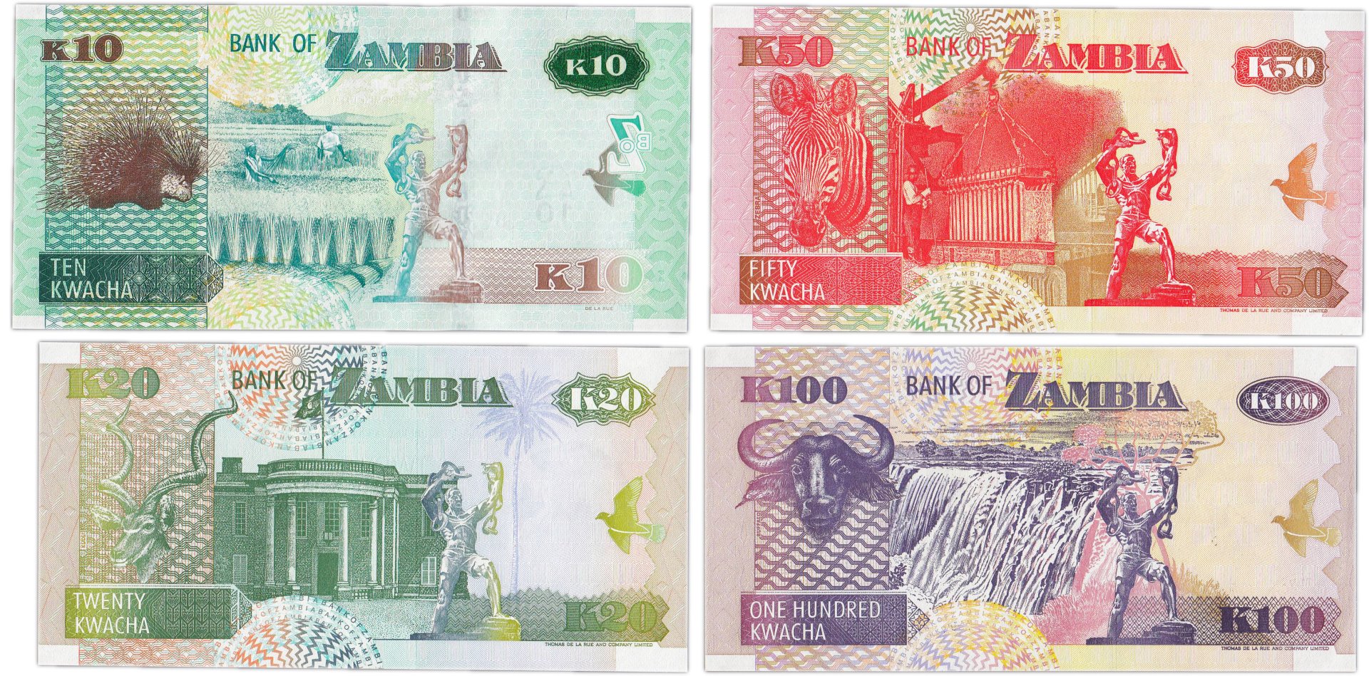 Купить Замбия набор из 4  банкнот 10, 20, 50, 100 квача "Попугаи" 1992-2020