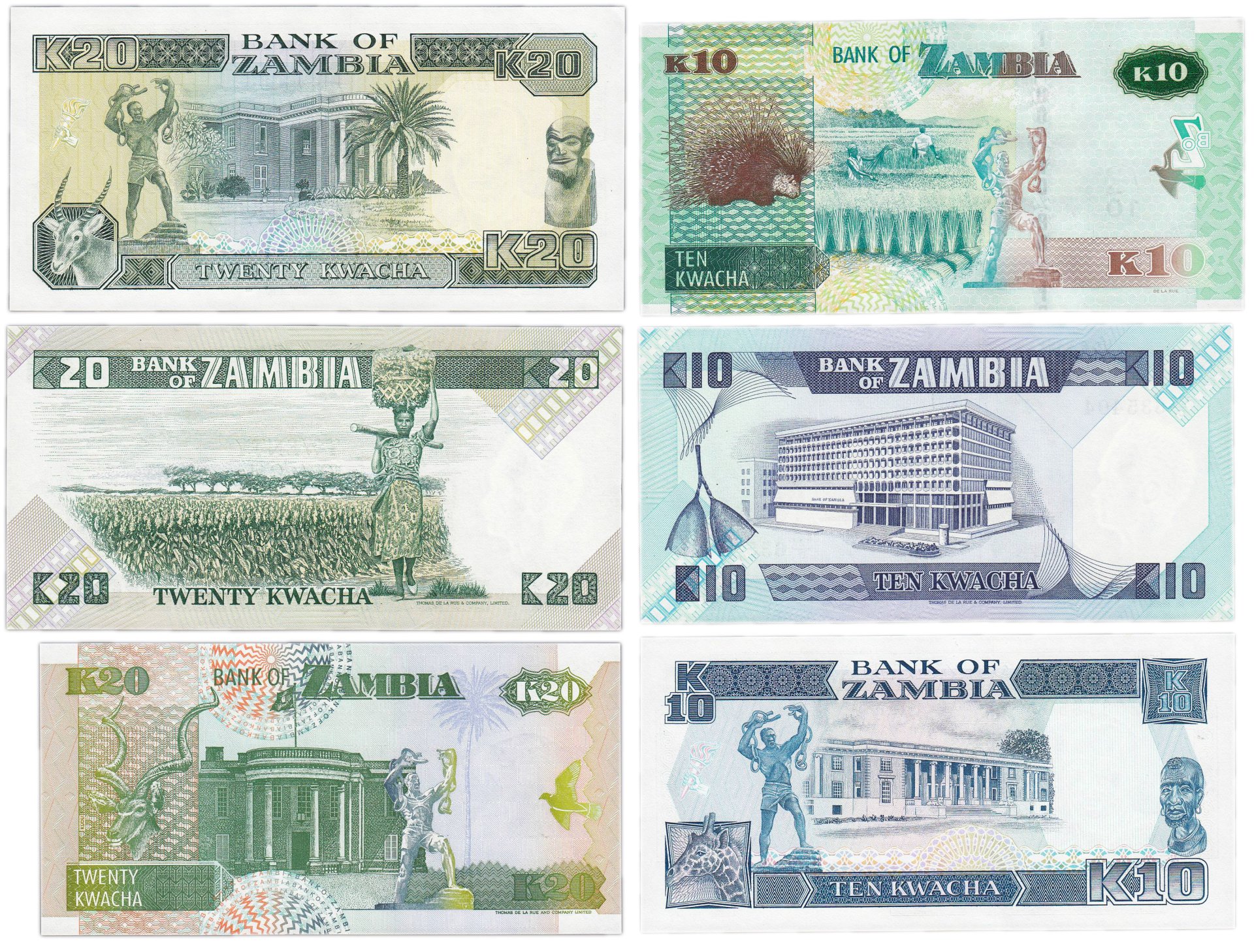 Купить Замбия набор из 6 банкнот 10 и 20 квача 1992-2020