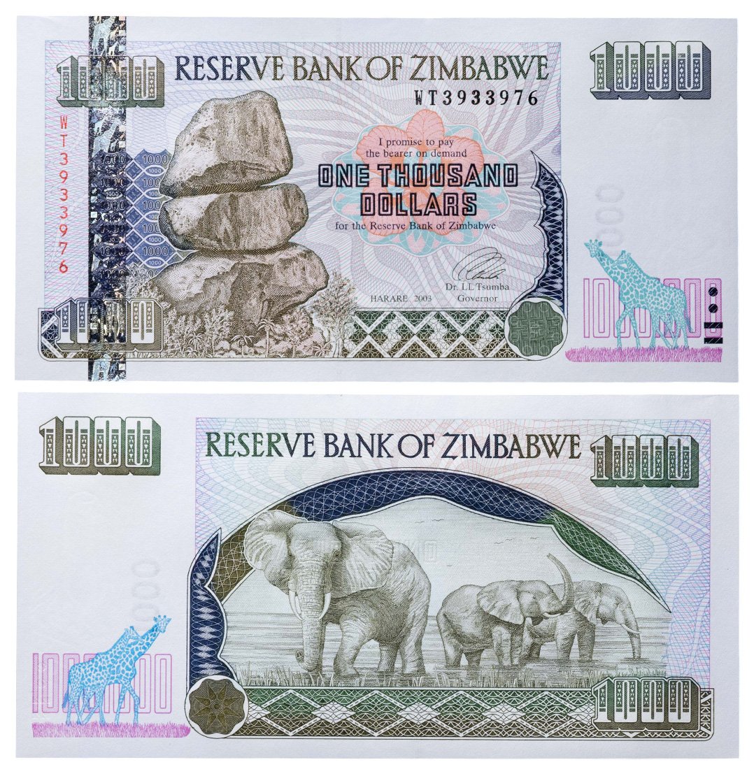 купить Зимбабве 1000 долларов 2003 ПРЕСС