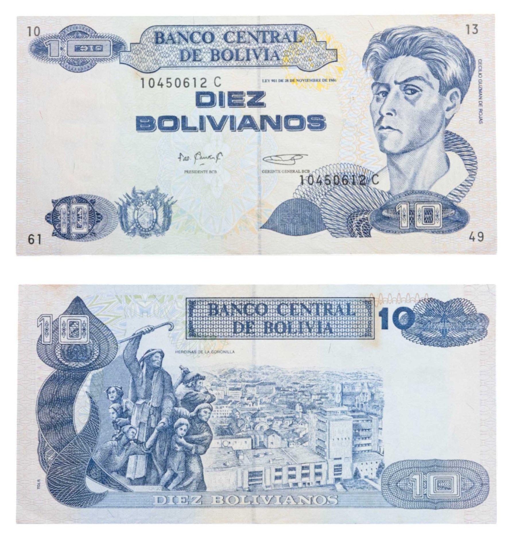 Боливия 10 боливиано 1986 года (Pick 216a)
