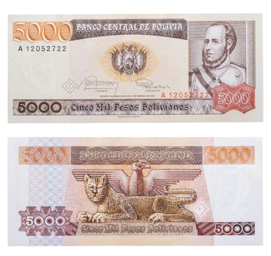 Боливия 5000 песо боливиано 1984 года