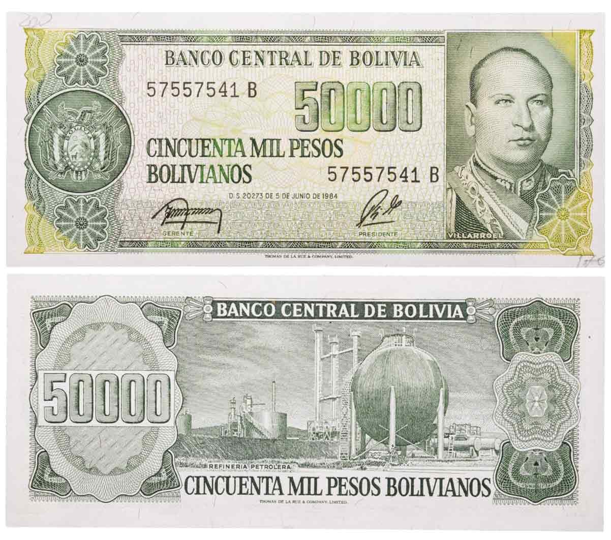 купить Боливия 50000 песо боливиано 1984 "Очистительный завод"