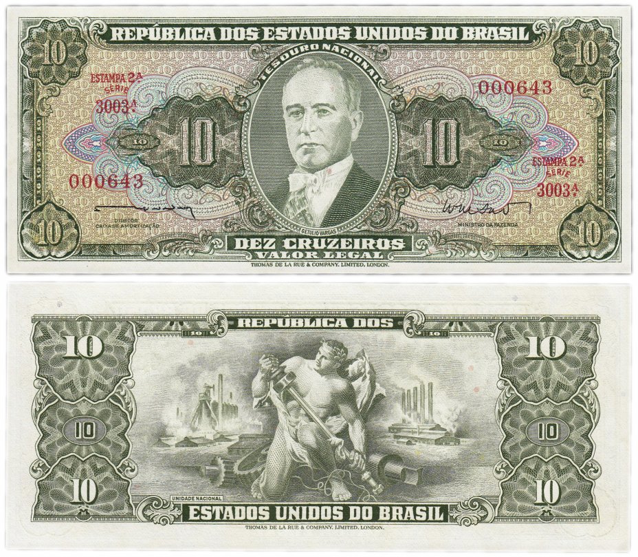 купить Бразилия 10 крузейро 1953 (Pick 159)