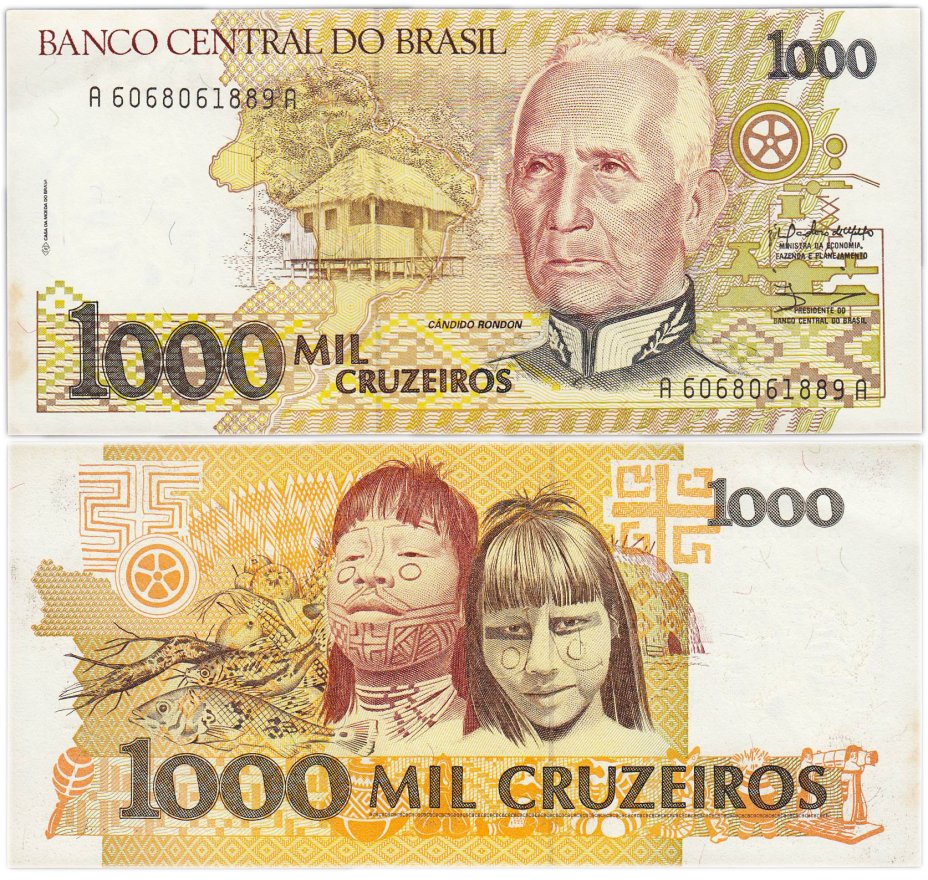 Бразилия 1000 крузейро 1990 года (Pick 231a)