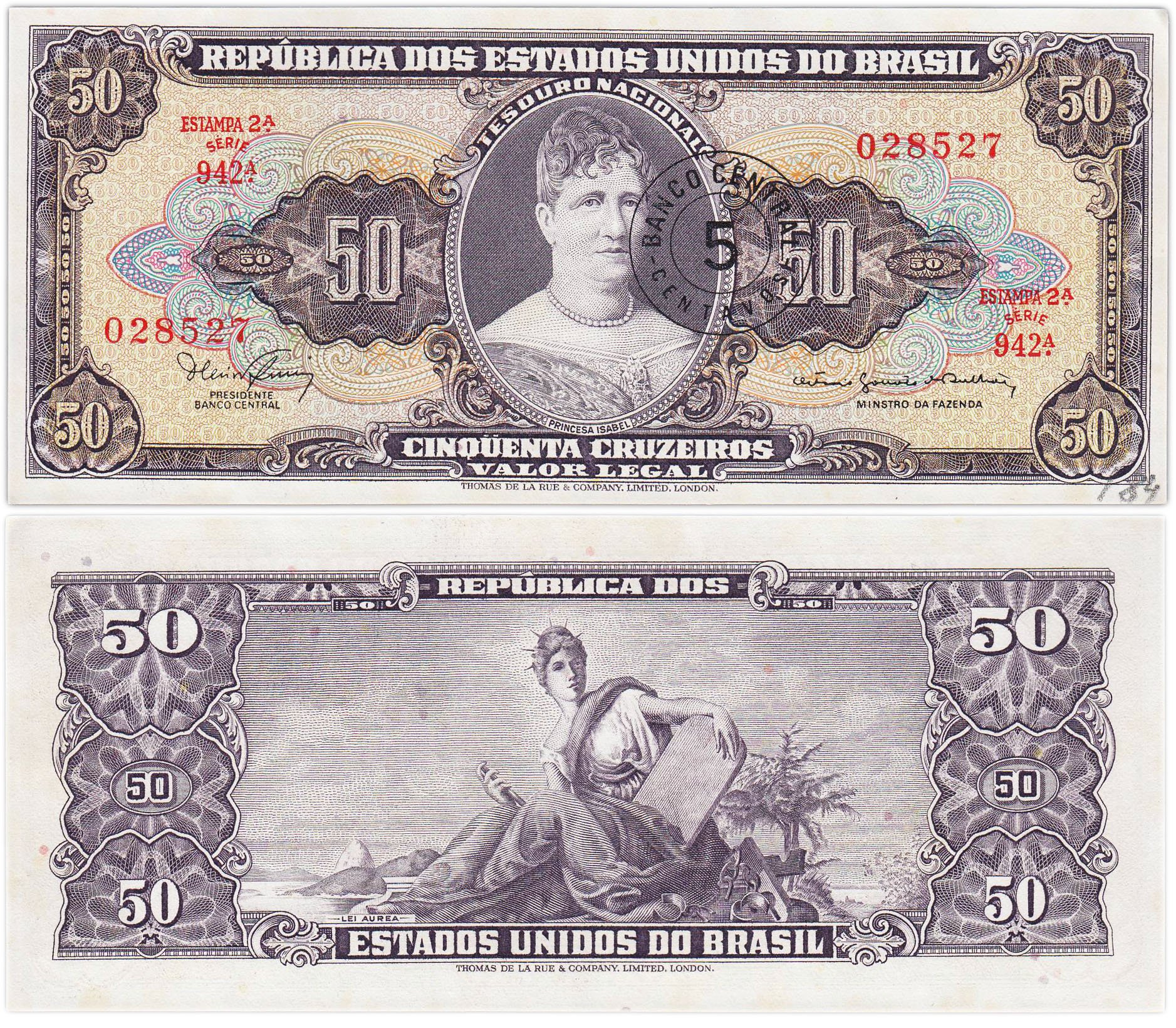 Бразилия 5 сентаво 1966-1967 на 50 крузейро ПРЕСС