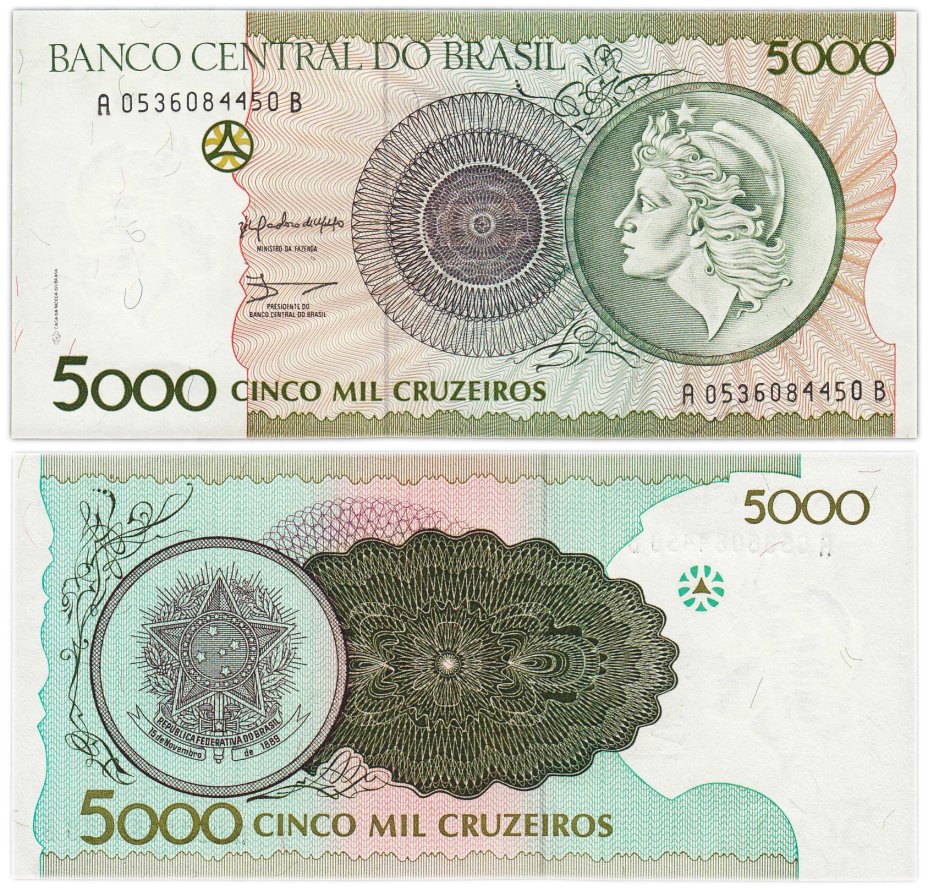 Бразилия 5000 крузейро 1990 ПРЕСС