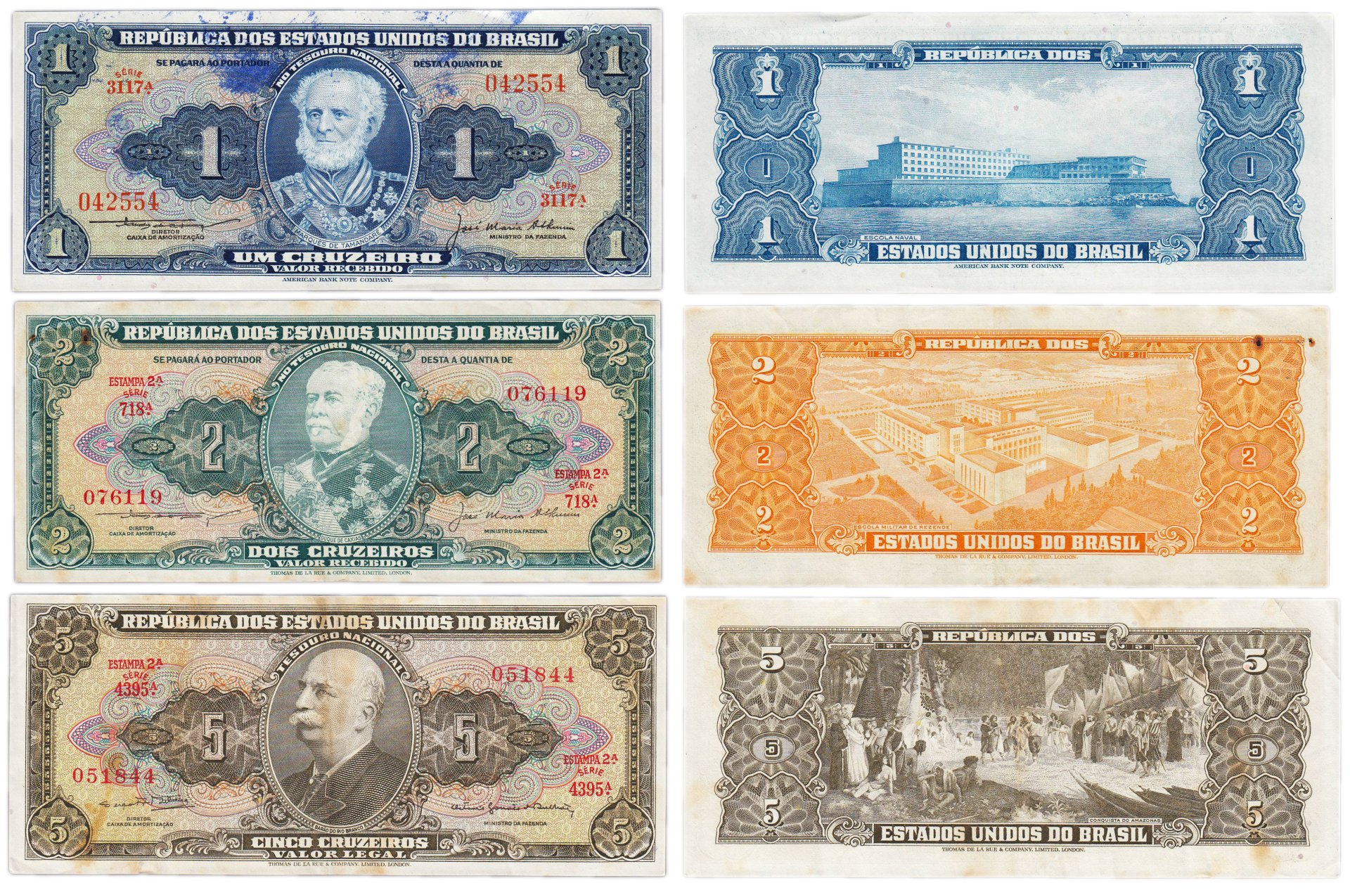 Бразилия набор из 3 банкнот 1, 2, 5 крузейро 1944-1964