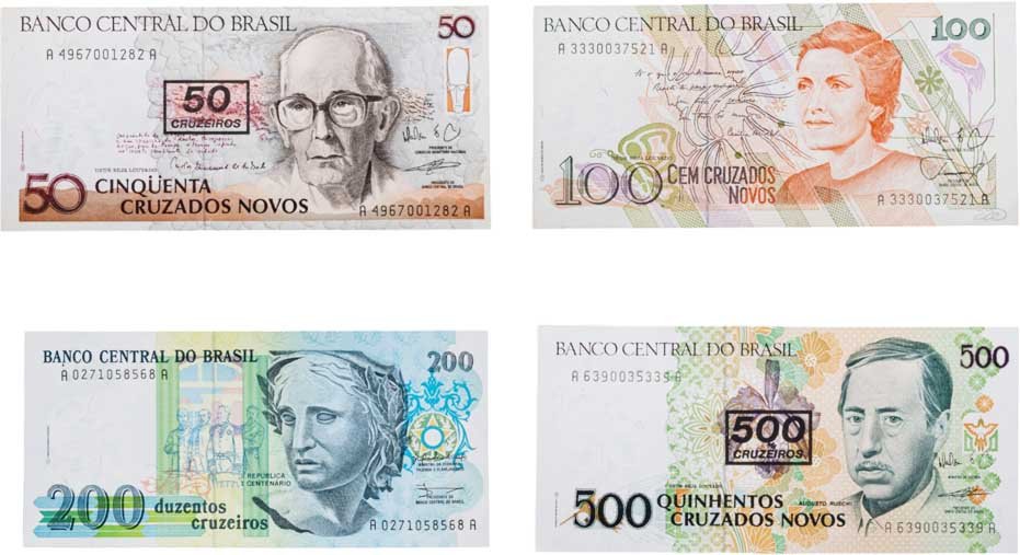 купить Бразилия набор из 4 банкнот 50, 100, 200, 500 крузейро 1990