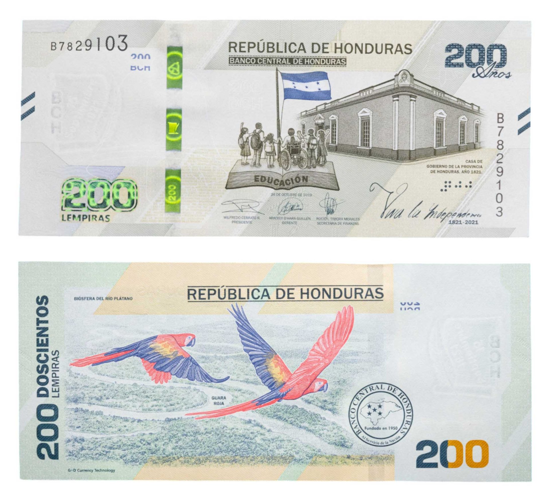 Гондурас 200 лемпир 2019 (Pick W105) Юбилейная 200 лет Независимости