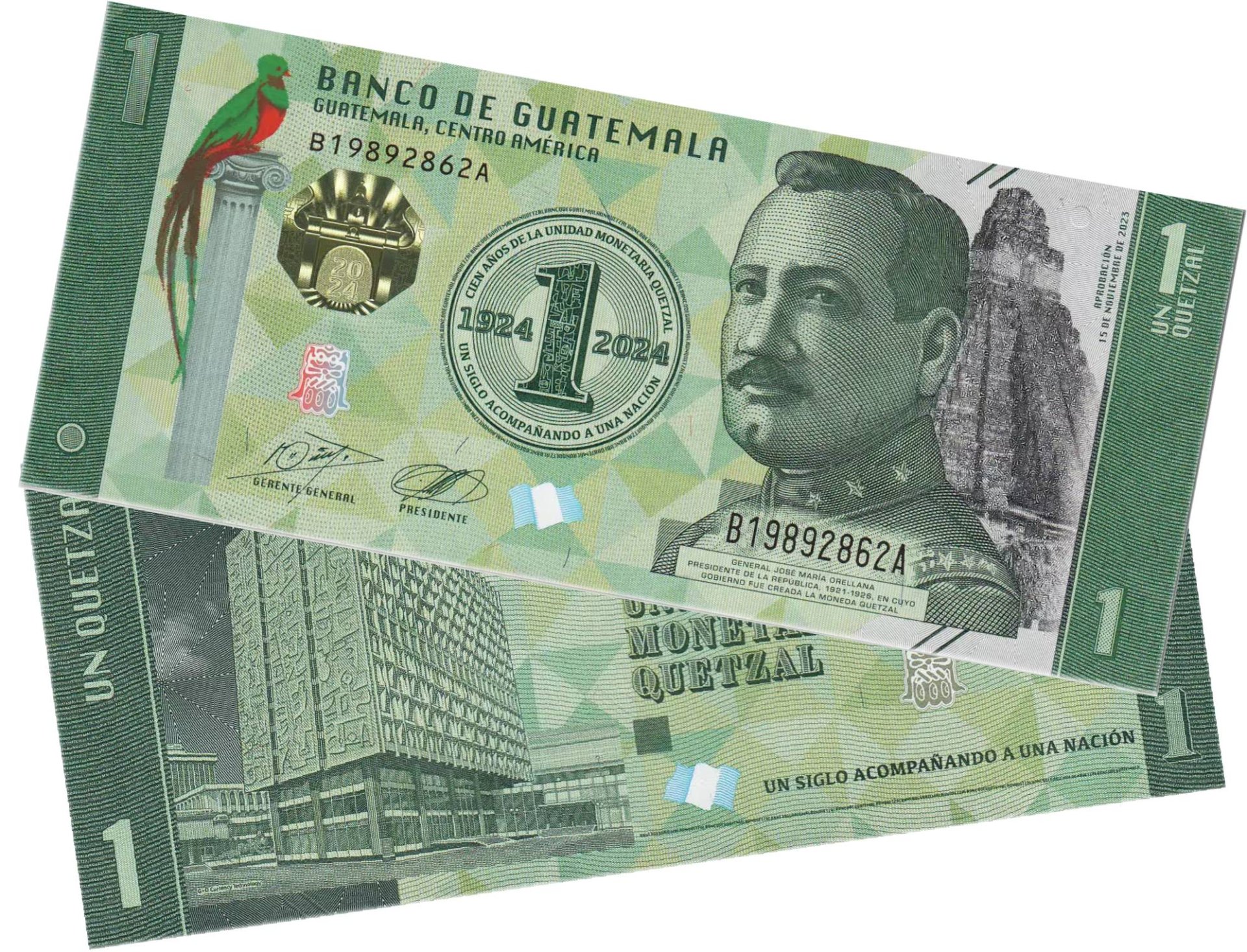 1 кетцаль 2024 памятная "100 лет Национальной валюте"