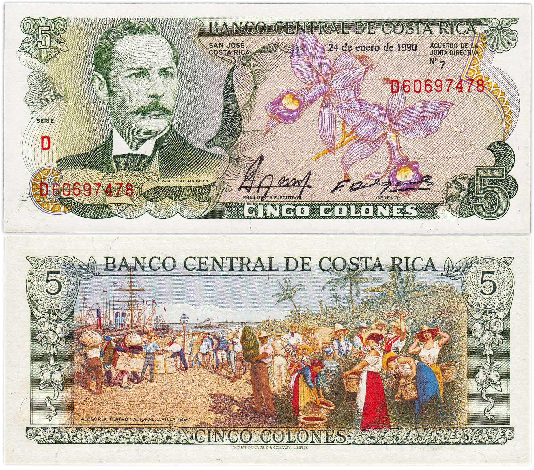 Национальной валютой Республики Коста-Рика является костариканский колон, получивший свое название от американского первооткрывателя Колумба, фамилия которого по латыни произносится как «колон». Колон Коста-Рики введен в денежное обращение в 1896 году, вытеснив предшественника — костариканский песо.