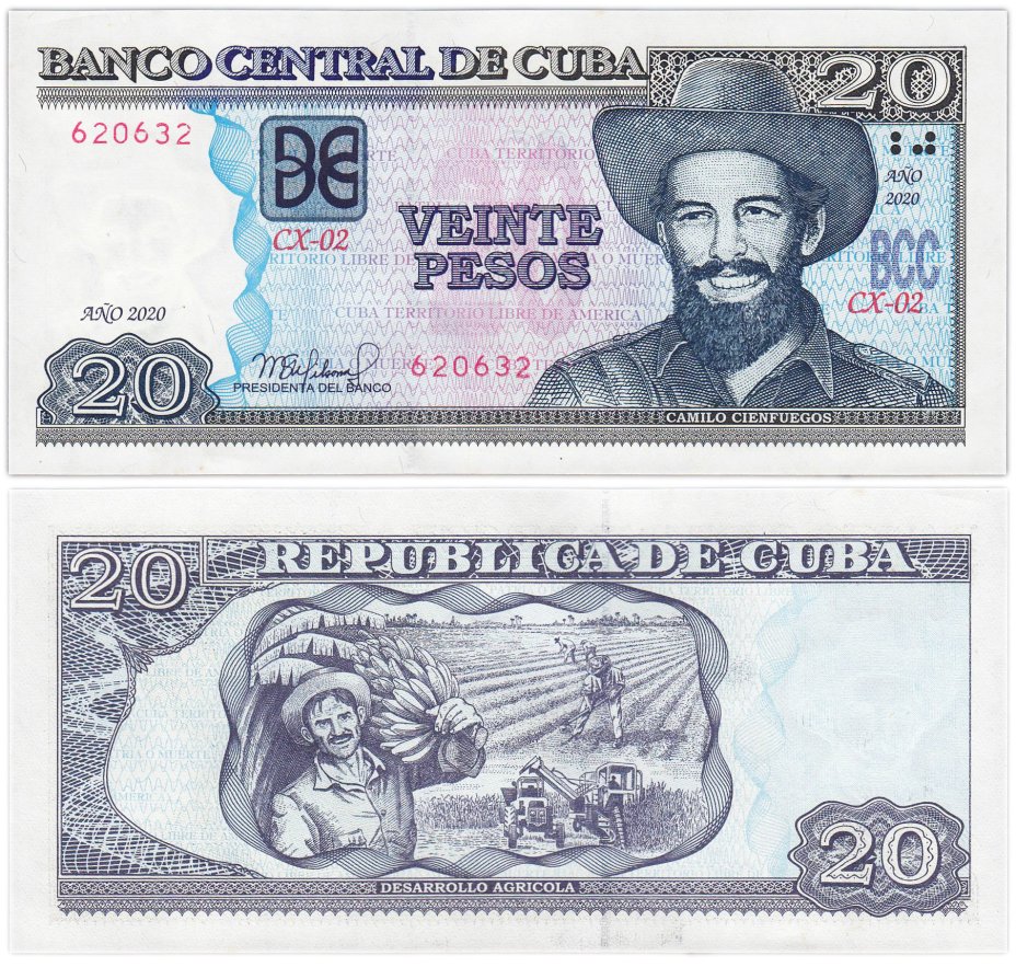 Куба 20 песо 2020 год "Сбор бананов, Развитие сельского хозяйства" Р-122